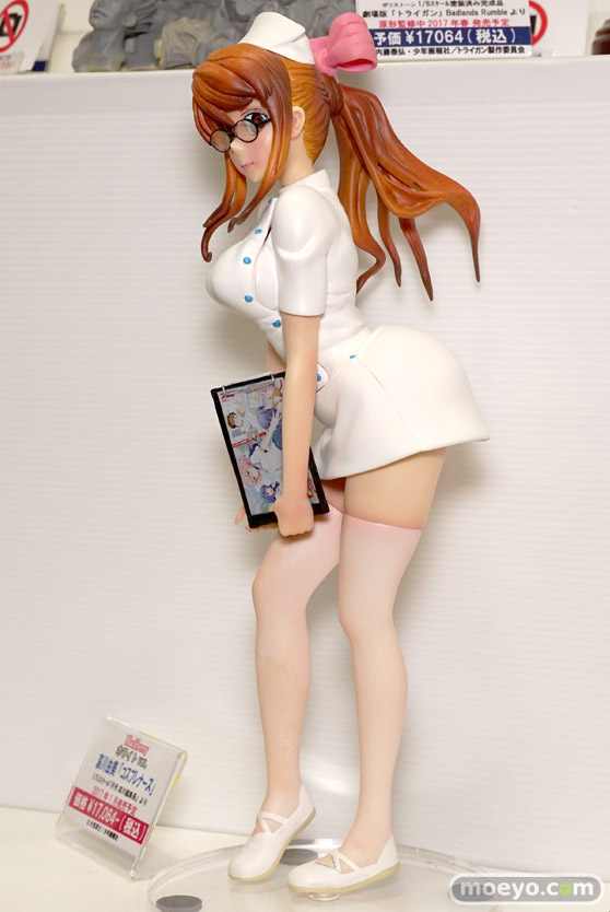 今月206年12月発売予定のブラックベリー新作フィギュア「月刊哀川編集長 哀川由美 コスプレナース ホワイト/ピンクVer.」の彩色サンプルが「宮沢模型 第38回 商売繁盛セール」の会場で展示!製品版ではナース服の胸部分とスカートがキャストオフできるようで、あられもない姿にも!また、カラバリとなるピンクver.は、手に持つ小物がホワイトVer.の用箋挟から馬用巨大クスコに変更されています。原型制作はMESH!斑斑プラスさん。その展示の様子を画像レビューとしてお伝えします!