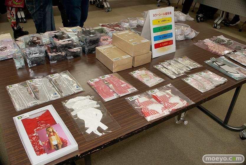 会場では様々な衣装を着たドールのサンプルが展示され、そのサンプルドールの下にそのドールが着用している服が商品として置かれ、気に入ったものをショッピングカート(物理的な買い物カゴ)に入れてまとめて生産という、お買い物感満載のアットホームなシステムとなっていました。