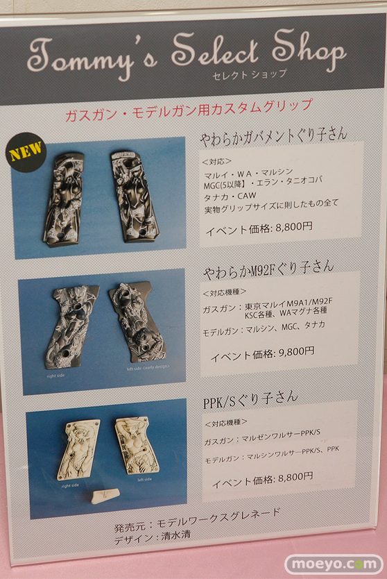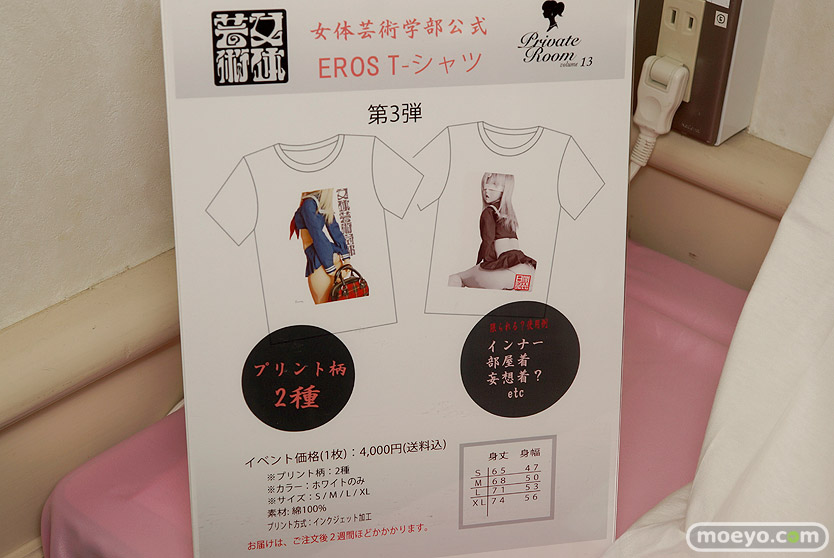 ほか、リアルアートプロジェクトの2017年発売予定の新作ドール用アイテムサンプルの展示や、女体芸術学部公式EROS T-シャツ、そしてなぜかエアガン用のエログリップ販売などもw