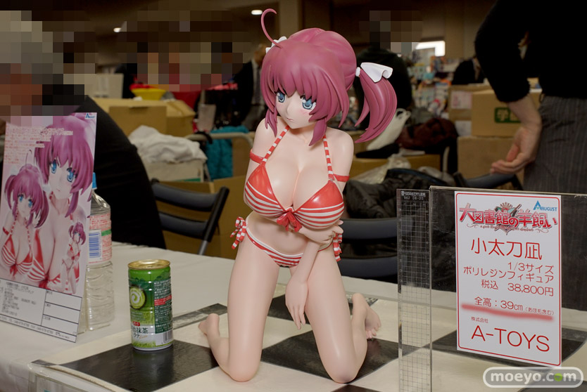 A-TOYSの新作フィギュア「大図書館の羊飼い 小太刀凪」の彩色サンプルが、「宮沢模型 第38回 商売繁盛セール」の会場で展示!『身長が一番小さい彼女ですが、なんと作中では一番の巨乳!そして今回は「ちょっと照れた」表情を再現しております。』というもので、水着はPVCで【別パーツ作成】となっています!原型制作は八海(83℃)さん。その展示の様子を画像レビューとしてお伝えします!