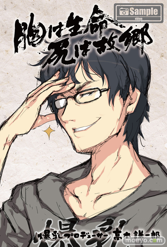 高木プロデューサーの似顔絵イラストにコメントが書かれたポストカード。