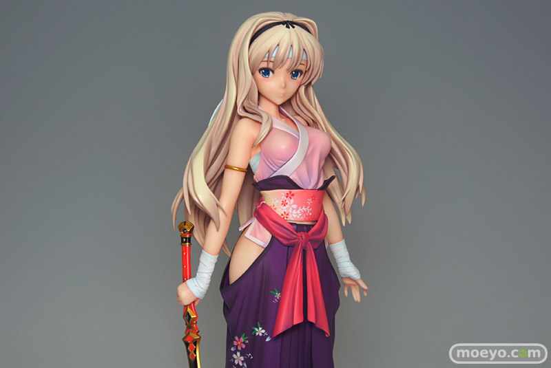 萩井俊士氏(スタジオ猿分室仮設所)の原型製作により、凛とした久寿川ささらを忠実に再現。帯や袴に散りばめられた花模様、刀の彩色にもこだわった繊細な作品です。