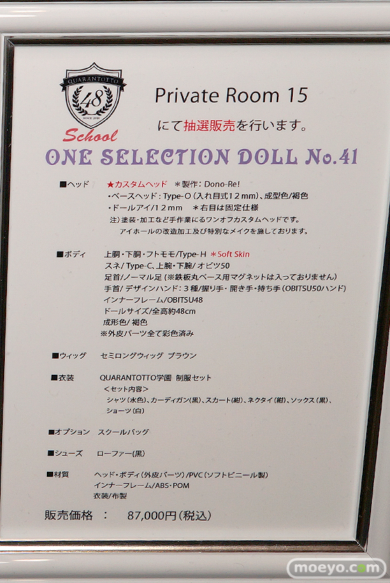 26日(日)開催の「Private Room 15」で抽選販売されるワンオフ物の展示など クアラントットブース特集【WF2017冬】「ワンダーフェスティバル 2017[冬]」のクアラントットブースでは、2月26日(日)に東京文具共和会館で開催される、セクシーなボディラインや表情が特徴のドールANGEL PHILIA/Pink Dropsの単独イベント「Private Room 15」で抽選販売される一点もの(ワンオフ)2点の先行展示がありました!ほか、イベント限定モデル「HANA」のサンプル展示の様子などを特集でお伝えします!
