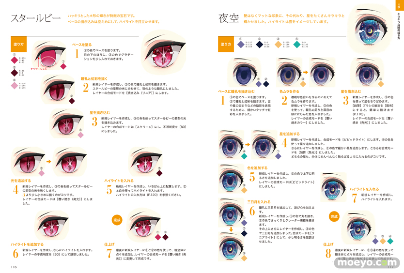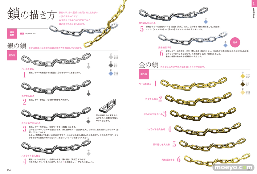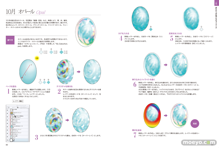 宝石の描き方はもちろん、描いた宝石を組み合わせてアクセサリーにする方法や、人物イラストとの組み合わせ方なども解説しています。