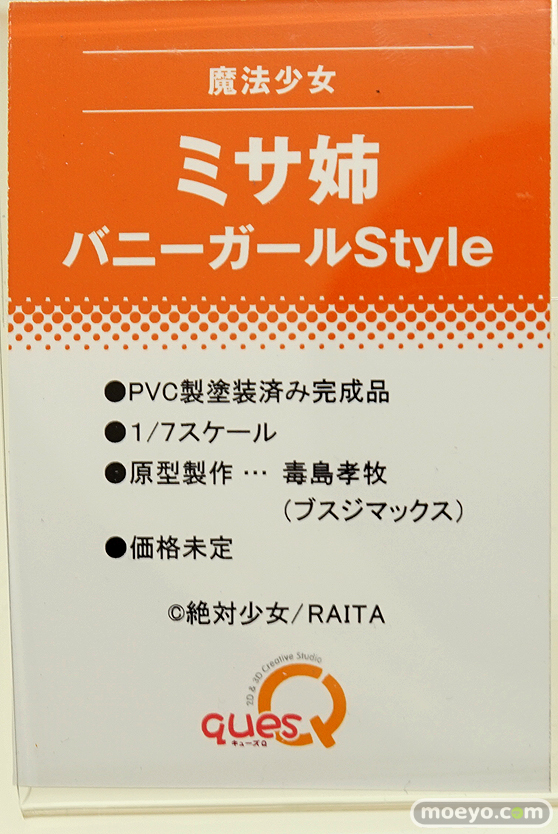 キューズQ新作フィギュア「魔法少女 ミサ姉 バニーガールStyle」監修中原型が展示!【WF2017冬】キューズQの新作フィギュア「魔法少女 ミサ姉 バニーガールStyle」の監修中サンプルが、「ワンダーフェスティバル 2017[冬]」の会場で展示!RAITAさん描く人気シリーズ「絶対少女」のミサ姉をバニーガール姿で立体化!原型制作は毒島孝牧(ブスジマックス)さん。その様子を画像レビューとしてお伝えします!