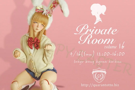 QUARANTOTTOのドールイベント「PRIVATE ROOM 16 ~HAPPY EASTER!~」が2017年4月16日(日)に東京文具共和会館にて開催決定!アイテム販売はもちろん「フリースペース及び撮影ブースの設置」「ご来場者様プレゼント企画」など盛りだくさん!(入場料FREE/※18歳未満の方はご入場できません)【QUARANTOTTO】