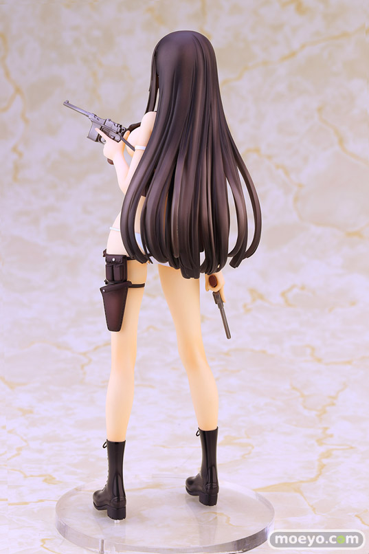 銃やブーツの造り込みと水着姿の無防備さのコントラストも魅力的。ずりあがった水着の紐に掛かる左手指など、細かな部分も忠実に再現いたしました。ぜひお手元でご堪能ください。