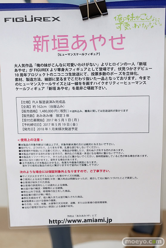 「河合理恵ver.Finest」「濡れ透け 小悪魔イヴ」「吉井結花」など 秋葉原の新作フィギュア展示の様子012017年5月12日のアキバ各店で展示されていた新作フィギュア展示の様子を、今回は数が多いので2回に分けて特集でお伝えします!こちらでは画像の予約開始前の展示となる「河合理恵ver.Finest」や、予約が開始されたばかりの「濡れ透け小悪魔イヴ コミックアンリアルVol.50 Cover Girl designed by モグダン」、「ツンデロ 吉井結花」、等身大フィギュアの「新垣あやせ」など、あみあみ秋葉原店でのサンプル展示の様子を。