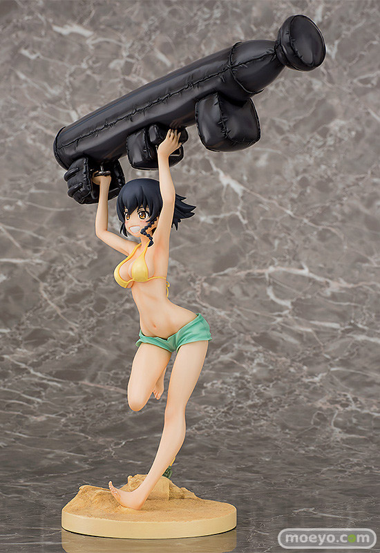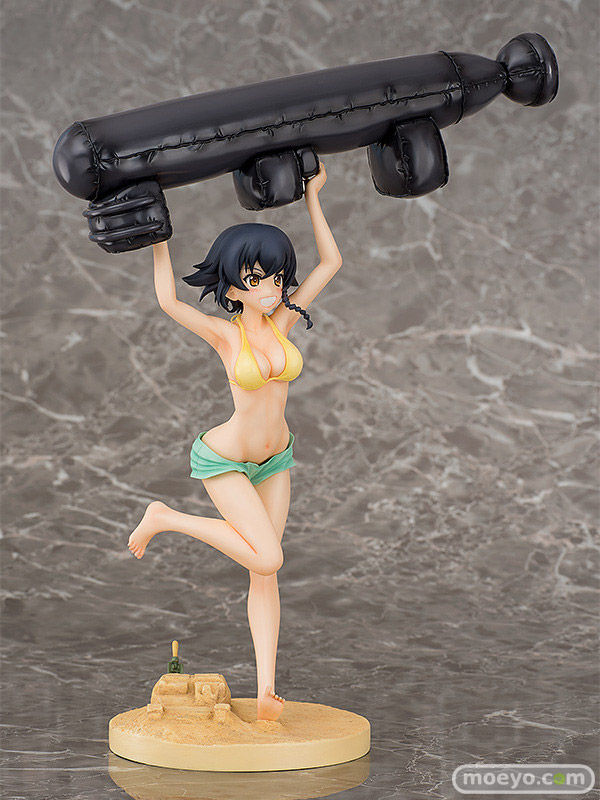 『ガールズ&パンツァー 劇場版』よりアンツィオ高校の副隊長、「ペパロニ」の水着姿を1/7スケールで立体化!抜群のスタイルや躍動感のあるポージングに弾ける笑顔はもちろん、2人乗りの巨大な浮き輪や台座に盛り込まれた砂細工のCV33など、見所満点でお送りします!さらに、オマケパーツとしてアンツィオの校章が入ったピザボックスのペーパークラフトをご用意いたしました!浮き輪パーツと差し替えて持たせることも出来ますので、お好みのペパロニでお楽しみください。
