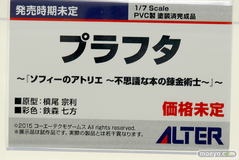 アルターの新作フィギュア「ソフィーのアトリエ ~不思議な本の錬金術士~ プラフタ」が予約受付開始!『特徴的な瞳は深みのある塗装で、語りかけるように小さく開いた口元が可愛らしい仕上がり。レオタード風のコスチュームは、柔らかそうな肌とのコントラストが眩しく、白を基調にしながらも青や紫の淡いシャドウ表現で透き通るような彩色が見所です。』などというもので、原型制作は槙尾宗利さん。彩色は鉄森七方さん。「ワンダーフェスティバル 2017[夏]」の会場で展示されていた彩色サンプルの様子を、画像レビューとしてお伝えします!