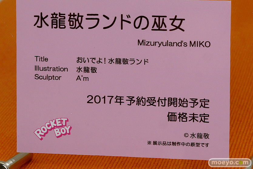 ロケットボーイ新作フィギュア「水龍敬ランドの巫女」監修中原型が展示!【WF2017夏】ロケットボーイの新作フィギュア「水龍敬ランドの巫女」の監修中原型が、「ワンダーフェスティバル 2017[夏]」の会場で展示!水龍敬さんの代名詞ともいえる「水龍敬ランド」からついに立体化です!ビッチ度100%のトンデモ衣装な巫女服姿で手を振る女の子となっていて、原型制作はA’mさん。氏の世界観が好きな方にはたまらない一品かと…!その展示の様子を画像レビューとしてお伝えします!(アダルトフィギュアとなります!18歳未満の方は閲覧をお控えください。)