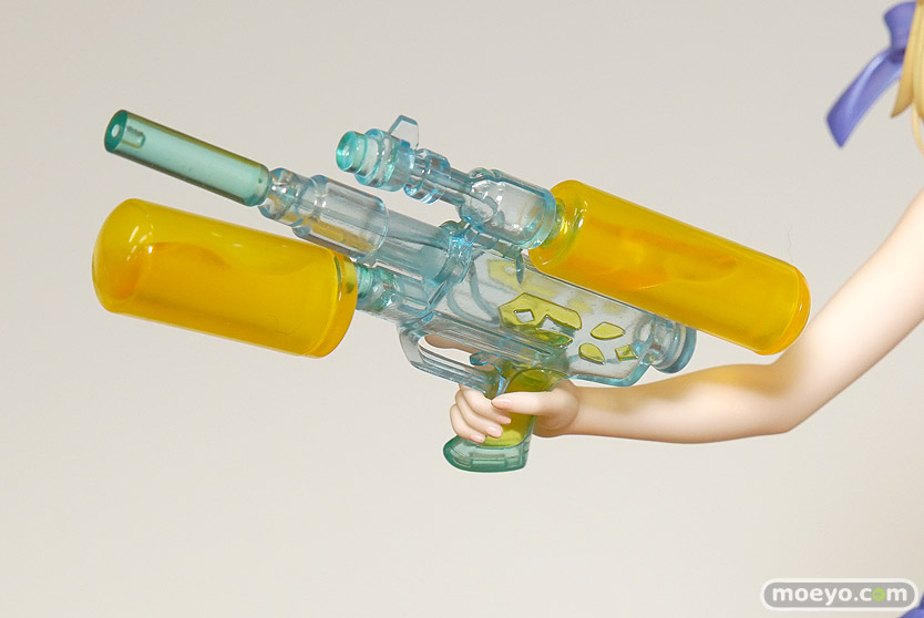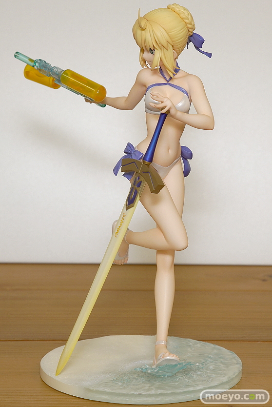 大人気スマホゲーム『Fate/Grand Order』より、夏の海にアーチャークラスのサーヴァントとして降臨した「アルトリア・ペンドラゴン」をスケールフィギュア化。夏の日差しがよく似合う爽やかな色合いの水着姿で立体化しました。スラリと伸びた健康的な肢体はもちろん、手にした聖剣「エクスカリバー」の造形や、中の水まで再現されたウォーターブリッツ用の水鉄砲など小物もこだわり抜いた造形となっています。また、足元の台座は海辺の砂浜をイメージした作りとなっており、足元で撥ねる水しぶきの表現なども見所です。普段の険しい表情から一転、夏のバカンスを楽しむ、はつらつとした笑顔のアルトリアと存分に戯れてみませんか?