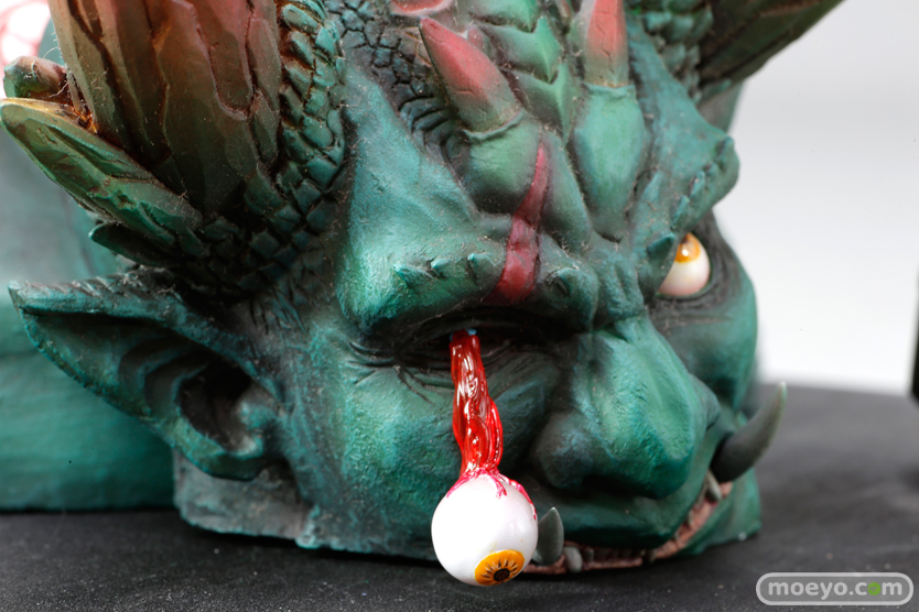 こだわり① 鬼!鬼の目玉が飛び出し、迫力に満ちています。原型師の気合いを感じます。彩色では鬼の首を切り落とした生々しい肉感をリアルに表現しました。