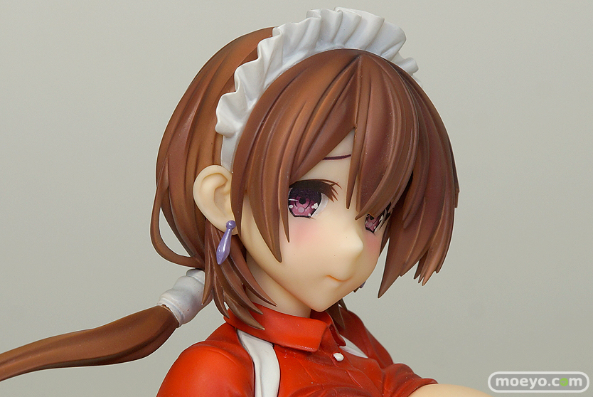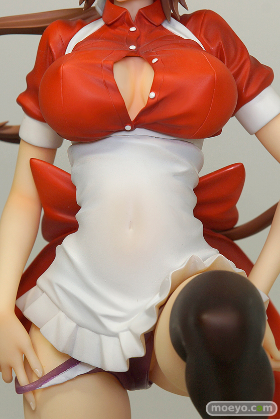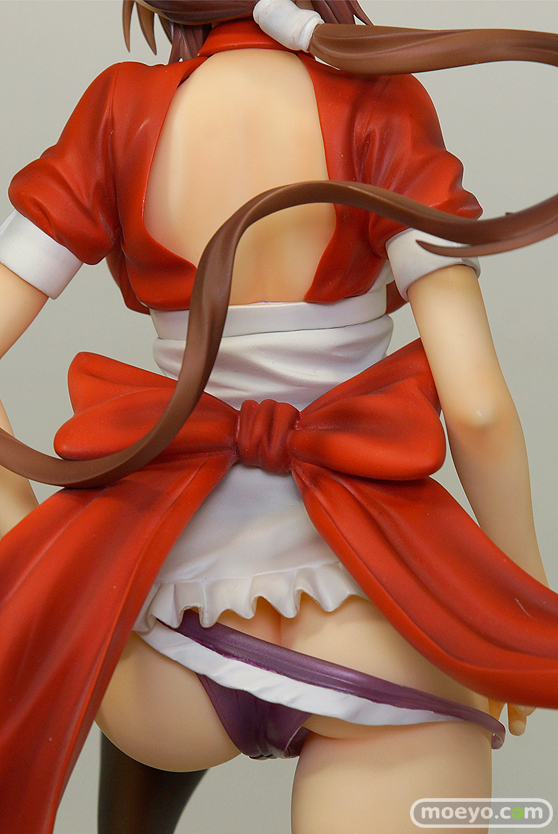 身体にぴったりと張り付くような赤白のメイド服、こぼれそうな胸元、むっちりとした太ももなどの質感の詰まったボディや、翻るリボンと美しく流れる髪の造形、両手にかけたパンツなど見どころ満載です。
