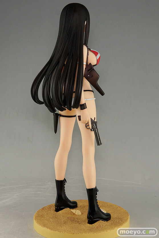 銃やブーツの造り込みと水着姿の無防備さのコントラストも魅力的。ずりあがった水着の紐に掛かる左手指など、細かな部分も忠実に再現いたしました。ぜひお手元でご堪能ください。