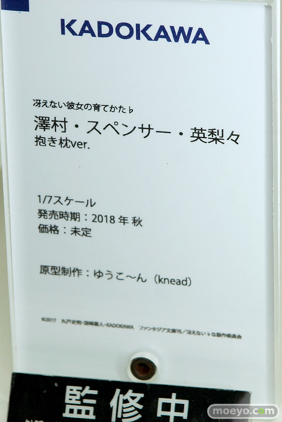 KADOKAWA新作フィギュア「冴えない彼女の育てかた♭ 澤村・スペンサー・英梨々 抱き枕ver.」監修中原型が展示!【WF2018冬】