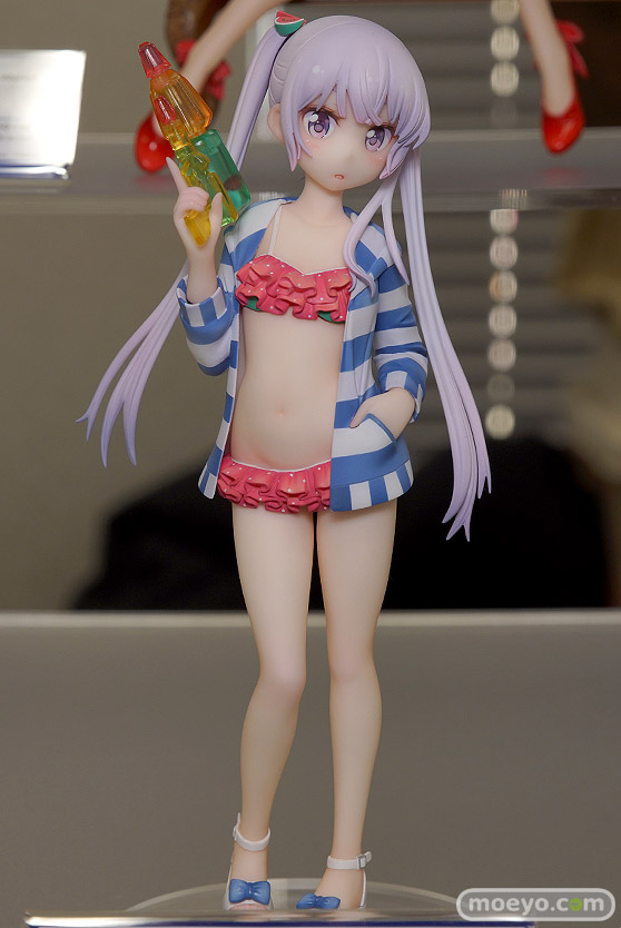 アクアマリンの新作フィギュア「NEW GAME!! 涼風青葉 水着style」が予約受付開始!『青白ボーダーのパーカーを羽織り、ウェッジソールサンダルをあわせた甘辛コーデの青葉は、可愛くもどこか大人っぽい印象。フリルビキニとお揃い色のスイカの髪留めが、愛らしい青葉をより魅力的に彩ります。』というもので、原型制作は本多平八さん。彩色は星名詠美さん。「2018冬 ホビーメーカー合同展示会」の会場で展示されていた彩色サンプルの様子を、画像レビューとしてお伝えします!
