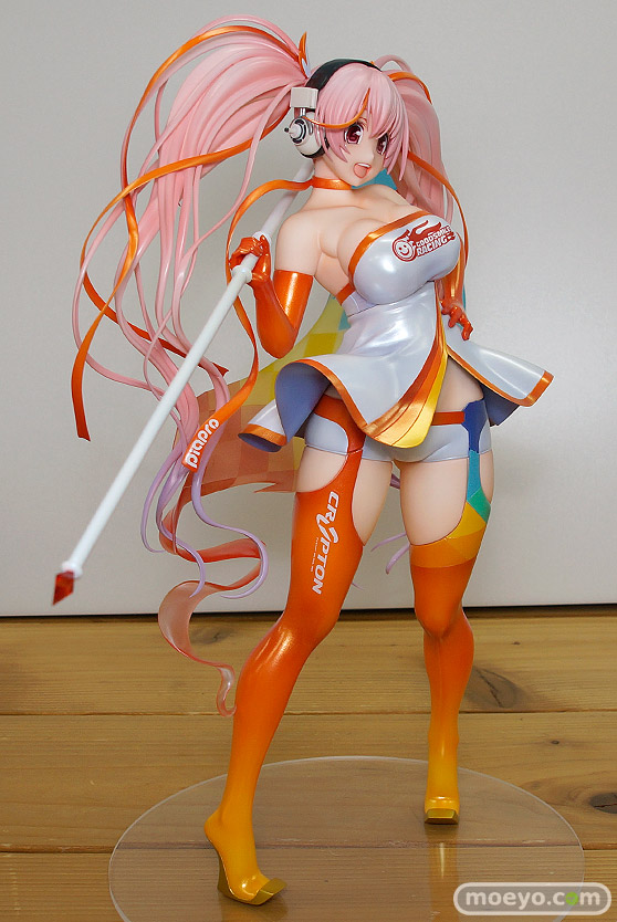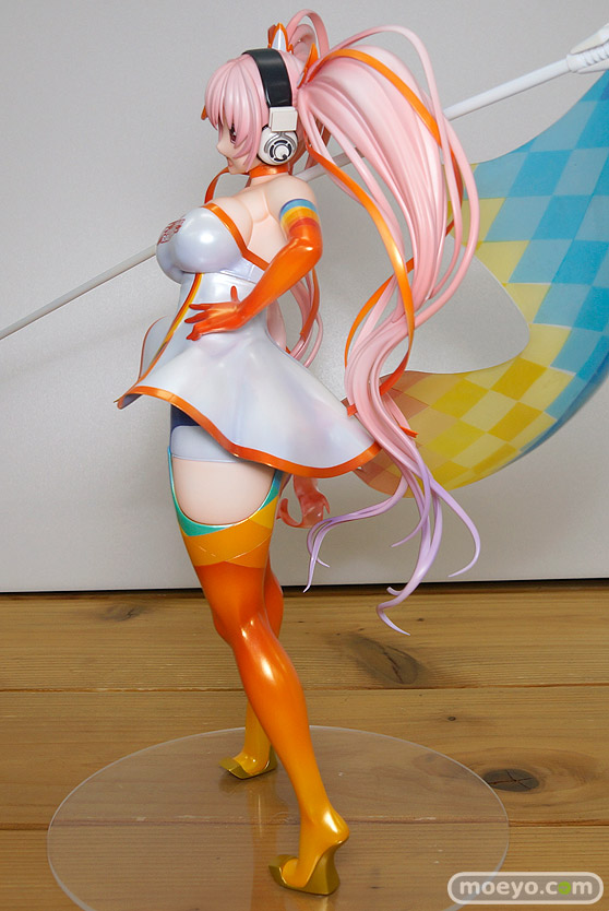 マックスファクトリーの新作フィギュア「初音ミク GTプロジェクト すーぱーそに子 レーシングVer. 2016」が予約受付中!『「初音ミク レーシングVer. 2016」のコスチュームに身を包んだ「すーぱーそに子」がフィギュア化!キャラクターデザイナー津路参汰氏が描いたイラストを元に、ボリューム満点のビッグサイズで立体化いたしました。』というもので、そに子らしい元気をもらえる明るい笑顔とわがままボディを見事に再現しています!原型制作はYOSHIさん。彩色はあきもとはじめさん。その最新の彩色サンプルを見せて頂けましたので、画像レビューとしてお伝えします!