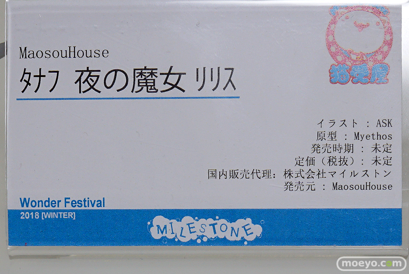 マイルストンの新作フィギュア「MaosouHouse タナフ 夜の魔女 リリス」監修中原型が展示!【WF2018冬】