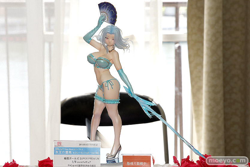 プルーヴィー新作フィギュア「極美 Girls Super Premiums 閃乱カグラ NewWave Gバースト 氷王の雪泉 セクシーランジェリーVer.」予約受付開始!【宮沢展示会41】プルーヴィーの新作フィギュア「極美 Girls Super Premiums 閃乱カグラ NewWave Gバースト 氷王の雪泉 セクシーランジェリーVer.」が予約受付中!『思い切って可愛いを投げ捨てて、綺麗な大人の女性にイメージチェンジした姿を初の立体化。Gカップグラマラスボディをアイスブルーカラーのセクシーランジェリーに身を包み、左手に氷剣、右手には扇子を持った戦闘モードを魅せる姿を思う存分お楽しみいただけます。』というもので、原型制作はエムアイシーさん。「宮沢模型 第41回 商売繁盛セール」の会場で展示されていた彩色サンプルの様子を、画像レビューとしてお伝えします!