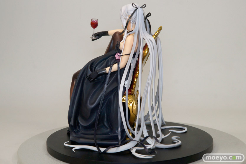 スカイチューブの新作アダルトフィギュア「美少女万華鏡-呪われし伝説の少女- 篝ノ霧枝 illustration by 八宝備仁」が予約受付中!『八宝備仁氏描く美麗な原画そのままに、愛好する赤ワインを片手に椅子へ腰掛け、微笑みを浮かべた霧枝を再現。』というもので、ドレスはキャストオフ可能!原型制作はEGGさん。その最新の彩色サンプルを見せて頂けましたので、2回に分けて画像レビューとしてお伝えします!こちらでは通常、ポロリ状態の様子を。(アダルトフィギュアとなります!18歳未満の方は閲覧をお控えください。)