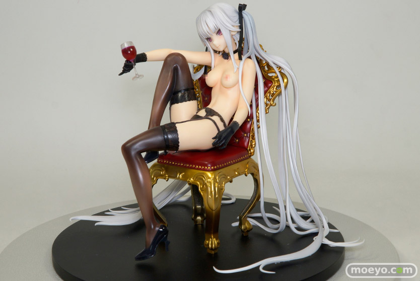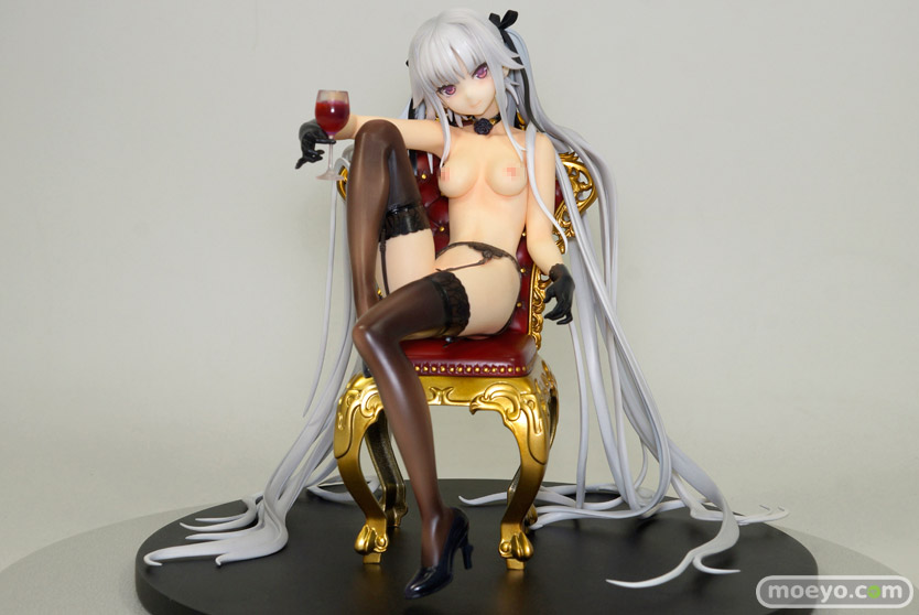 スカイチューブの新作アダルトフィギュア「美少女万華鏡-呪われし伝説の少女- 篝ノ霧枝 illustration by 八宝備仁」が予約受付中!『八宝備仁氏描く美麗な原画そのままに、愛好する赤ワインを片手に椅子へ腰掛け、微笑みを浮かべた霧枝を再現。』というもので、ドレスはキャストオフ可能!原型制作はEGGさん。その最新の彩色サンプルを見せて頂けましたので、2回に分けて画像レビューとしてお伝えします!こちらではキャストオフ&MOLO状態の様子を。(アダルトフィギュアとなります!18歳未満の方は閲覧をお控えください。)