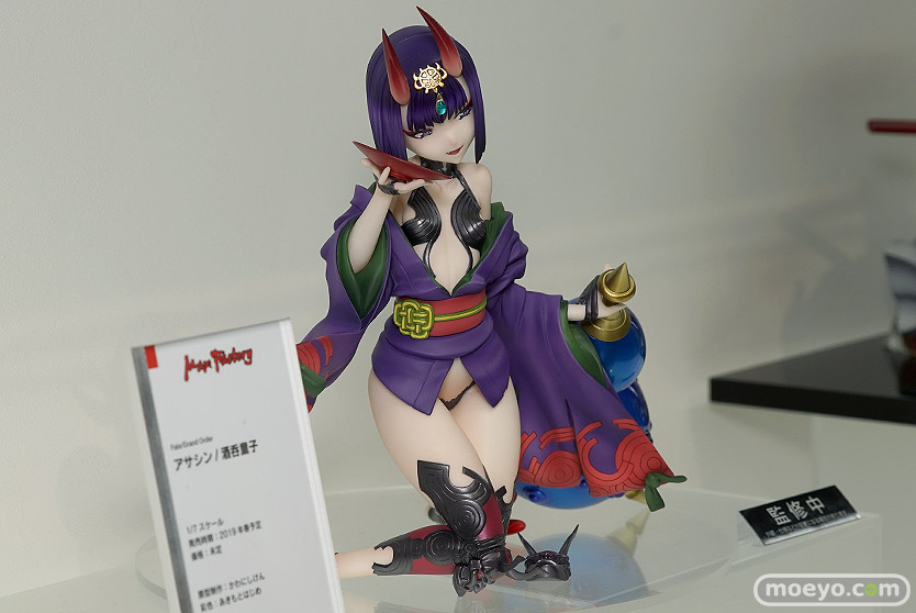 マックスファクトリーの新作フィギュア「Fate/Grand Order アサシン/酒呑童子」が予約受付開始!『第二再臨の姿をモチーフにオリジナルのポーズで立体化しました。ゆったり着こなした衣装から覗く肢体の柔らかさはもちろん、肢体を覆う装束の質感にもこだわりました。』というもので、原型制作はかわにしけんさん。彩色はあきもとはじめさん。「ワンホビギャラリー 2018 SPRING」の会場で展示されていた彩色サンプルの様子を、画像レビューとしてお伝えします!