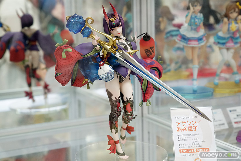 キューズQの新作フィギュア「Fate/Grand Order アサシン/酒呑童子」の彩色サンプルが、あみあみ 秋葉原ラジオ会館店で展示!『最も戦闘的な様相の、第三再臨での立体化です。ボリューミーな袖周りや大振りの刀、巨大な瓢箪は対照的な幼い体つきをより引き立て、迫力ある造形に。また足回りの鬼の装飾など、緻密なディテールも見所です。』というもので、左手の提灯には発光ギミックを内蔵。原型制作は毒島孝牧(ブスジマックス)さん。彩色製作は星名詠美さん。セクシーないでたちはもちろん、ほぼ丸出しのお尻も魅力的!その展示の様子を画像レビューとしてお伝えします!