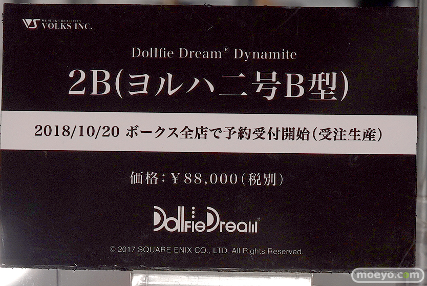 2018年10月20日よりボークス全店で受注開始!「ドルフィードリーム 2B/9S」のテストサンプルが展示!【TGS2018】9月20日~23日まで開催中の「東京ゲームショウ2018」の会場で、ボークスの「ドルフィードリーム ダイナマイト 2B(ヨルハ二号B型)」と「ドルフィードリーム 9S(ヨルハ九号S型)」2種のテストサンプルが展示!2018年10月20日よりボークス全店で受注開始とのことです!その展示の様子を画像レビューとしてお伝えします!