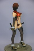 縫い目まで再現された手足の具足や、左フトモモのクナイ、手に持つ刀、鞘、外せる上着の背中部分の造形など、エロ以外の部分も非常に魂のこもった造形ですな〜!