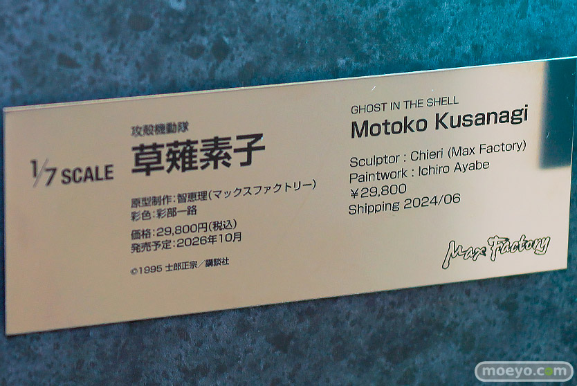 マックスファクトリーの新作美少女フィギュア「攻殻機動隊(原作) 草薙素子」が予約受付開始!『漫画『攻殻機動隊』より、草薙素子がスケールフィギュアとなって登場。単行本第1巻の表紙イラストをベースに、立体ならではのアレンジを加えて立体化。フォトフレームのように立てかけて飾れる特別な仕様となっています。』というもので、原型制作は智恵理(マックスファクトリー)さん。彩色は彩部一路さん。「スマイルフェス2025」の会場で展示されていた彩色サンプルの様子を、画像レビューとしてお伝えします!